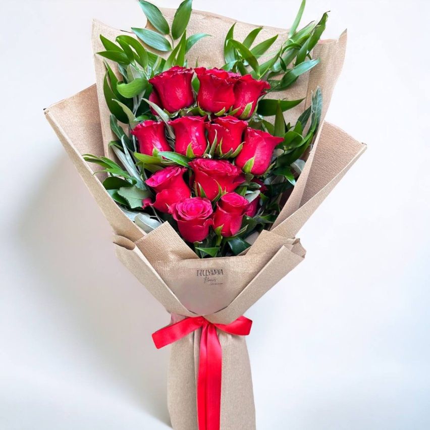 Buketimiz, 12 adet kırmızı ithal ekvator gülleri ve yeşilliklerden oluşmaktadır.