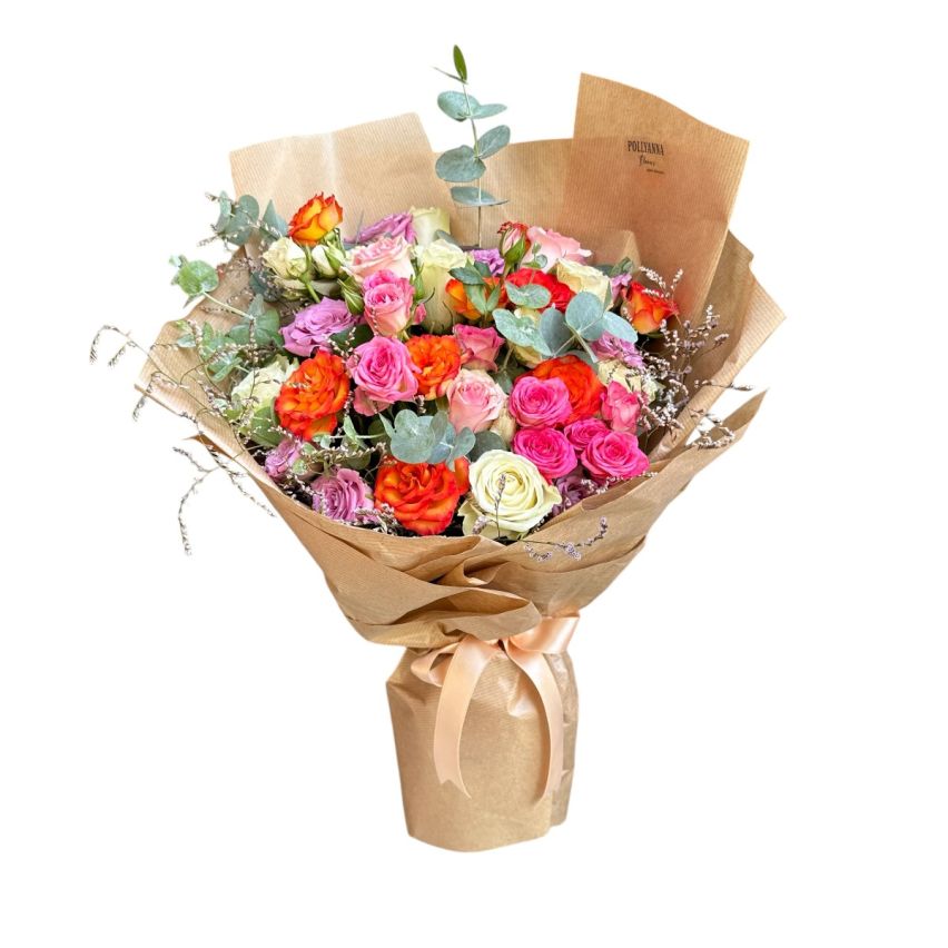 Renkli çardal güllerden ve mini güllerden oluşan bu canlı buket, enerjik ve neşeli bir atmosfer sunar. Her anı renklendirmek ve sevdiklerinize mutluluk katmak için mükemmel bir seçim!